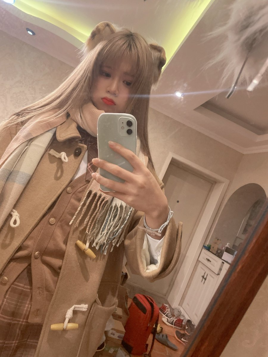 这种情况下可以说是不协调感拉满,所以如果想穿 jk 格裙,尽量在外面穿一个足够宽松的外搭!宽松的外搭自然下垂可以直接无视胯宽小的问题,整个上半身更加的 “蓬松” 视觉效果上就不会显得人太高,没有倒三角,也不会显得肩宽问题!所以我秋冬季节时会更热衷穿 jk,针织毛衣,大衣等搭配让自己 “圆滚滚”*